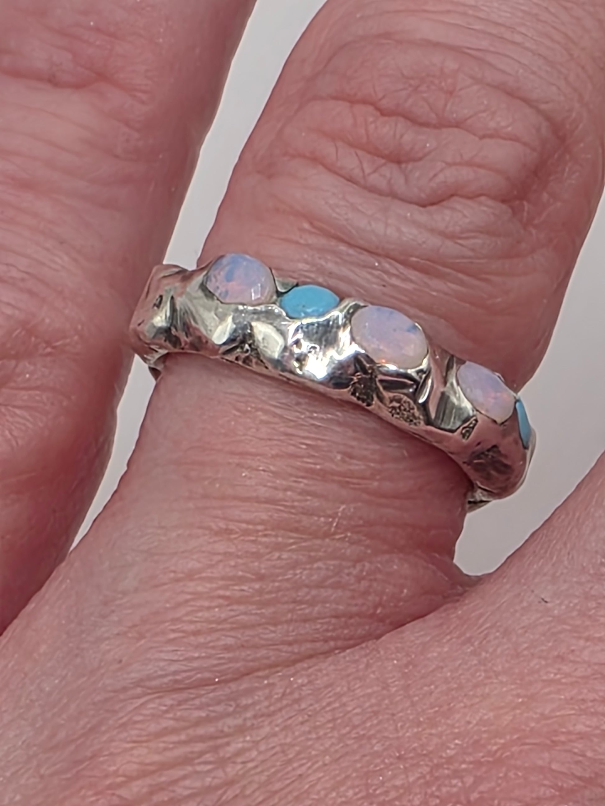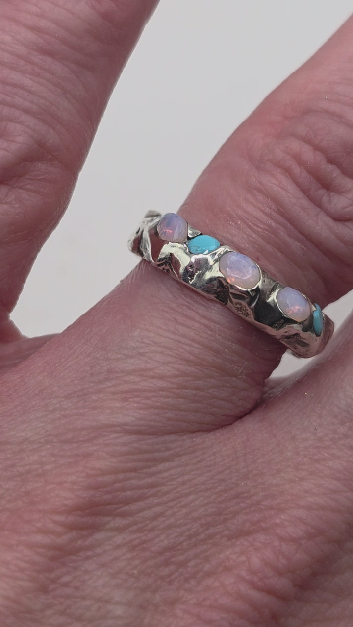 - 2× 3mm round lab grown turquoise gems (eco-friendly)