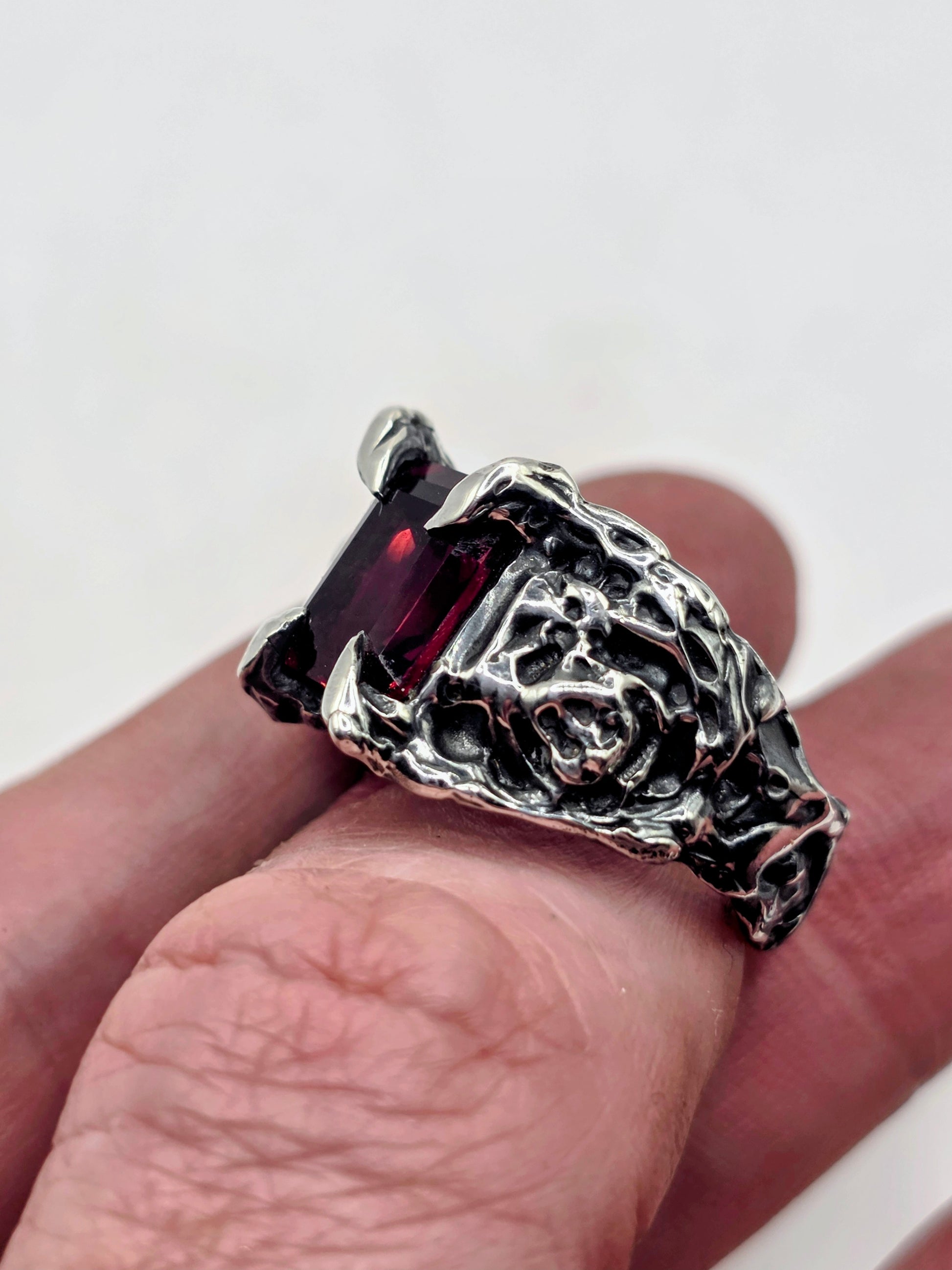 A gothic statement ring with a strong, sculpted presence.