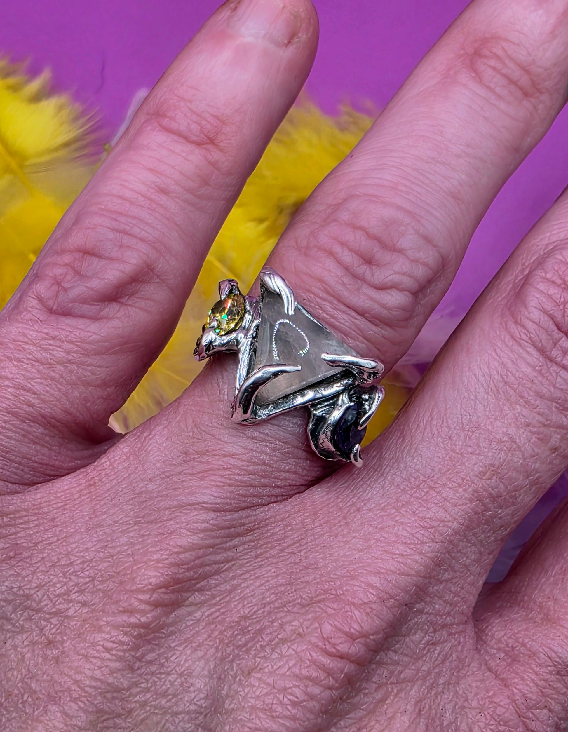 Inspired by the movie The Royal Tenenbaums, off-centre composition, considered colour, and details that feel slightly out of place on purpose, a truly unique ring